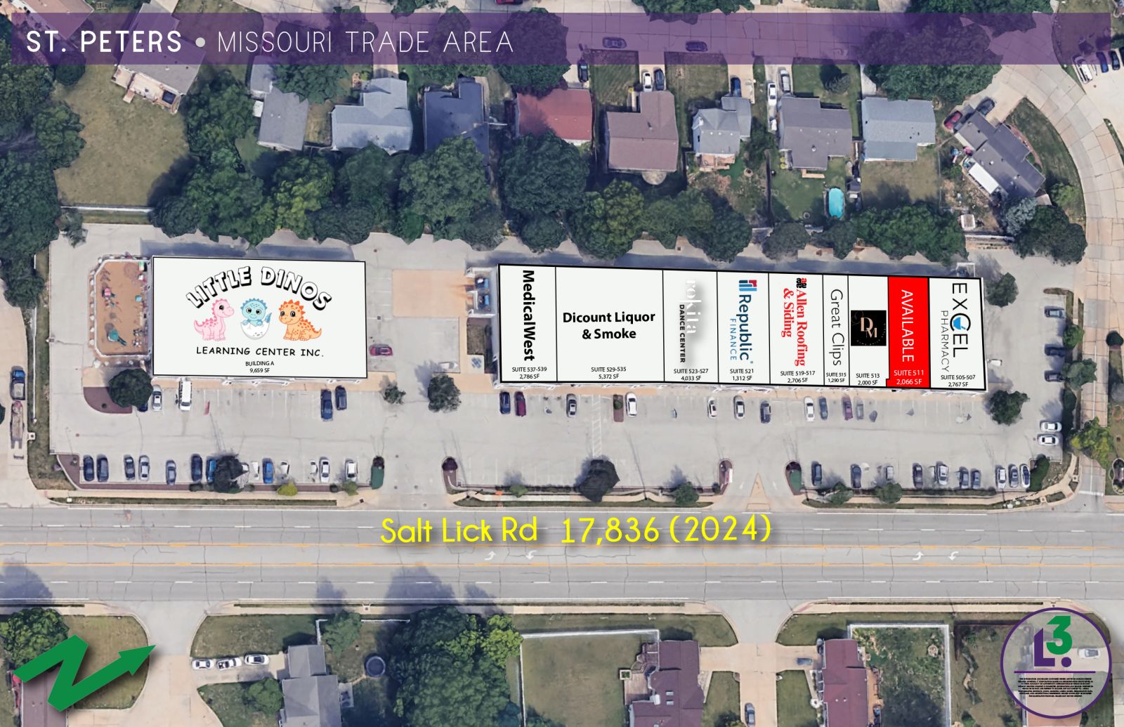 • 2,066 SF AVAILABLE IN HIGH TRAFFIC SAINT PETERS SALT LICK CENTER