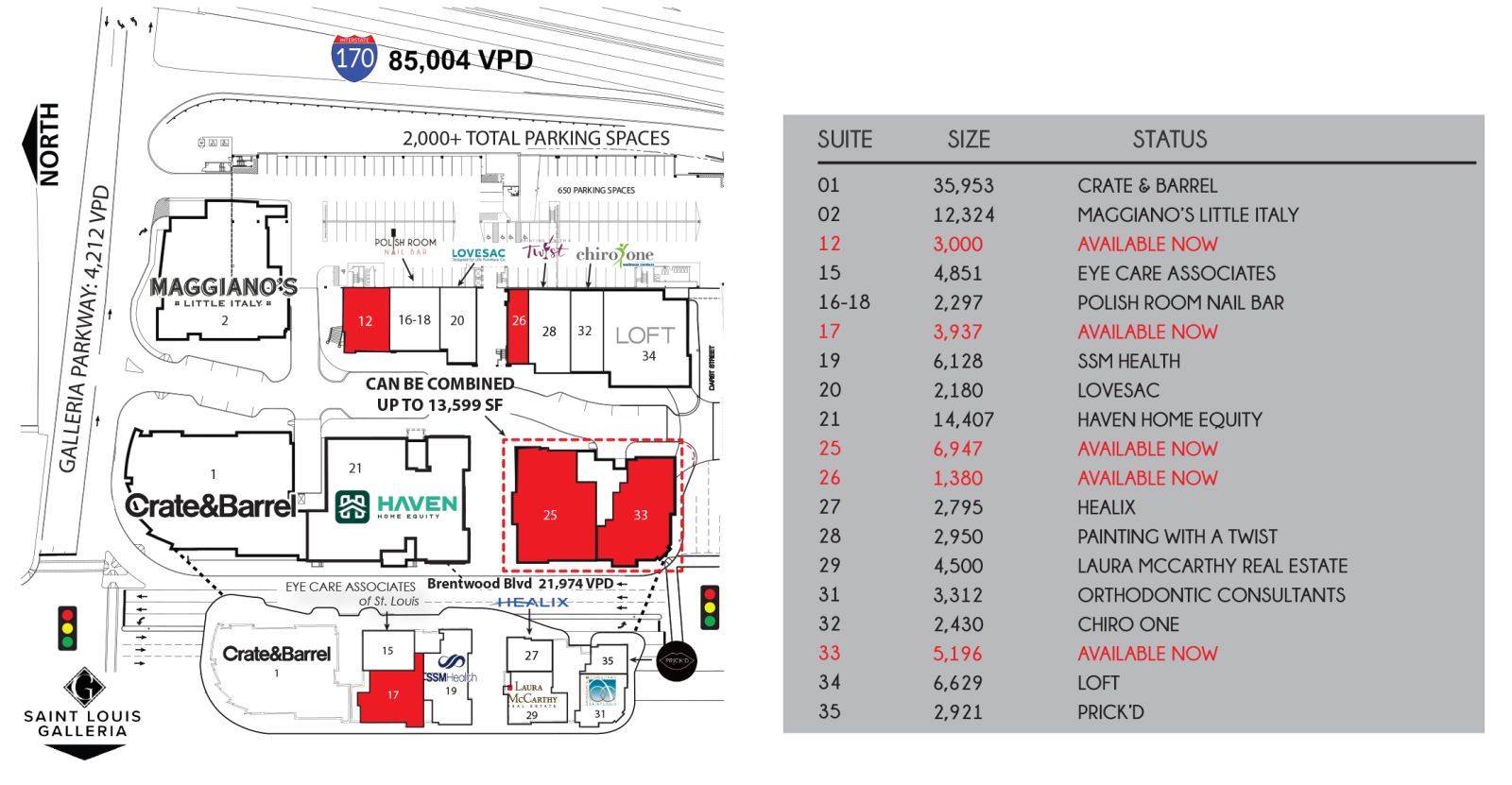 • $725 SALES PSF AT ST. LOUIS GALLERIA LOCATED DIRECTLY WEST AND ACROSS THE STREET FROM THE BOULEVARD